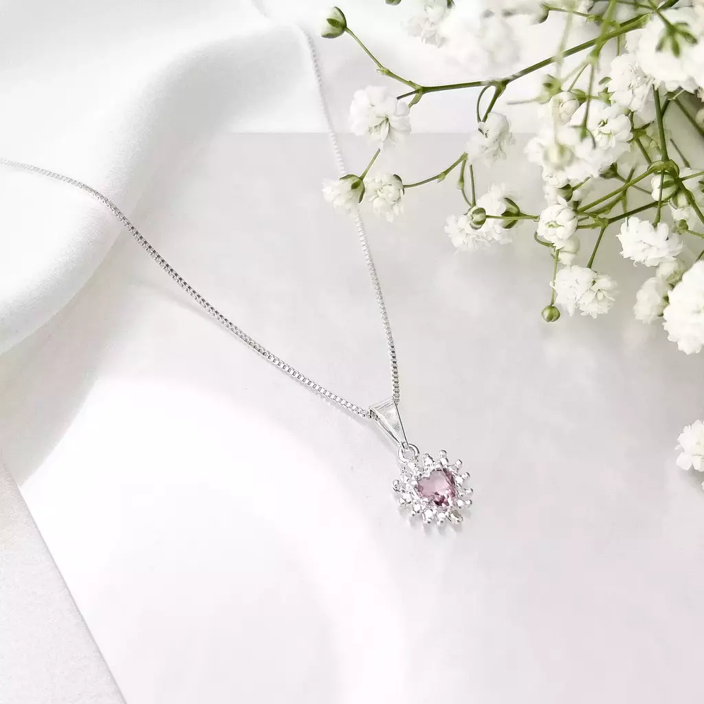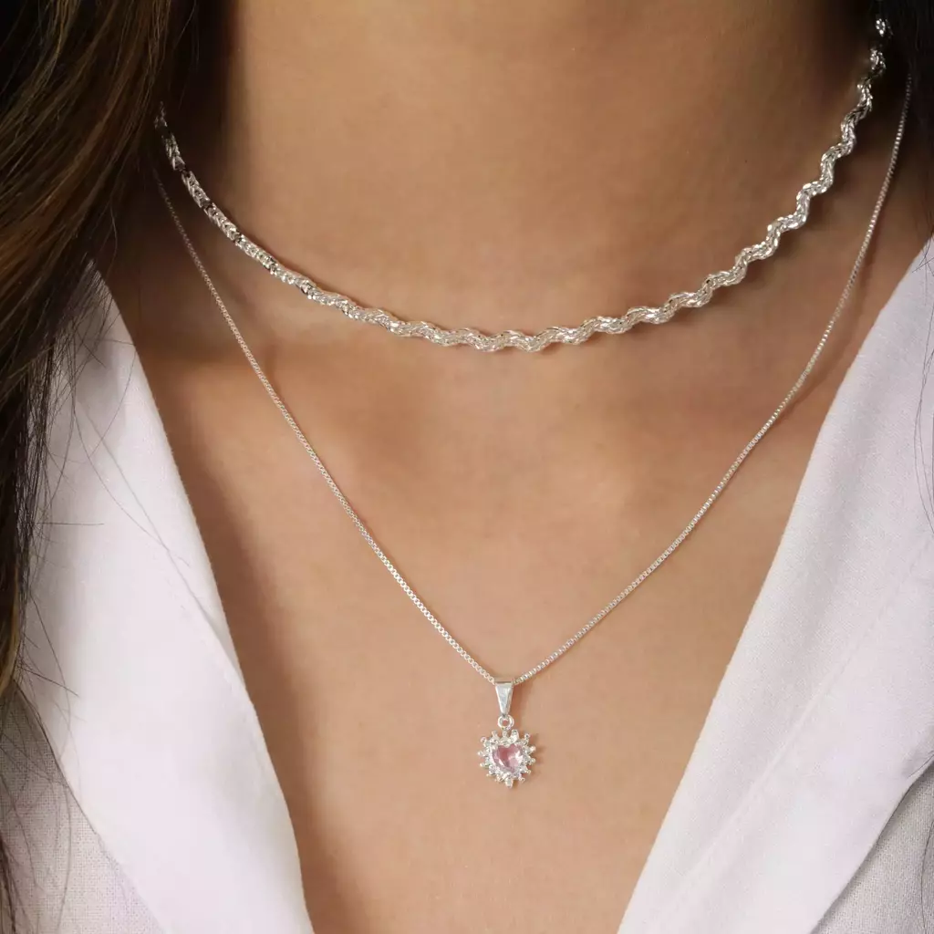 Colar em formato de coração, na cor cristal, com borda detalhada.
